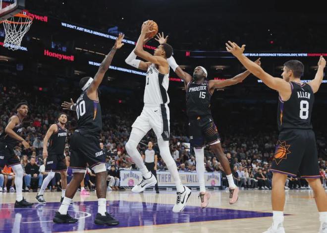 目前球队几大外线火力点的三分数据为:瓦塞尔三分命中率35.4%(勉强合格)、巴恩斯39.3%(非常出色)、卡斯尔34.6%(勉强合格)、尚帕尼30.4%(拉胯水平)、文班亚马28.6%(极其拉胯)、凯尔登-约翰逊46.7%(手感发烫)、哈珀35.7%(勉强合格)、麦克劳克林28.6%(极其拉胯)。